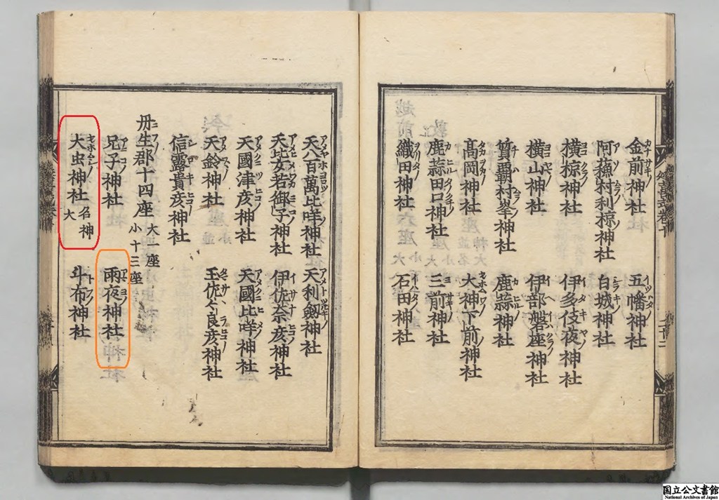 醍醐天皇 延喜の制、名神大社に列る、〔延喜式〕