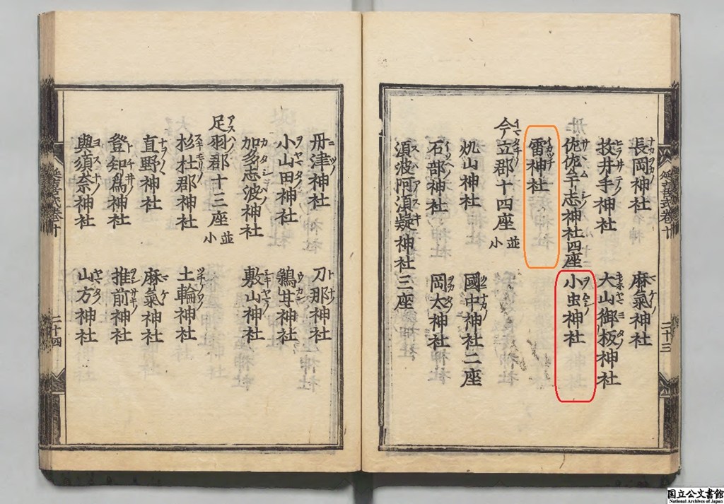 光仁天皇 寶龜十一年十二月甲午、小虫神を幣社とし〔續日本紀〕