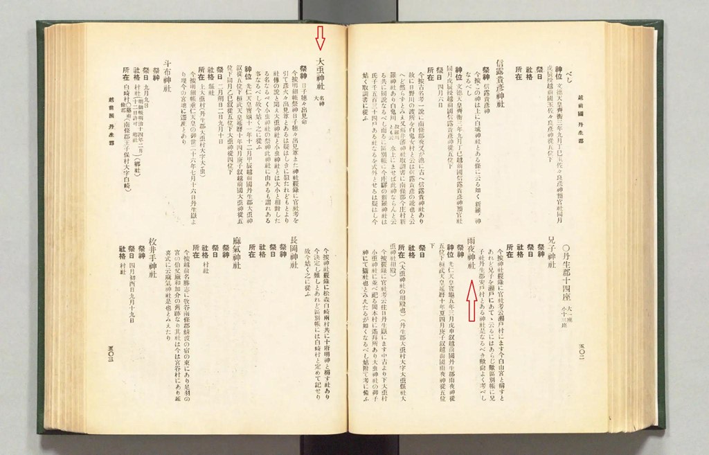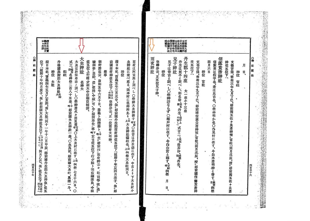 〇式三、〔臨時祭〕名神祭二百八十五座、〔中略〕越前國大虫神社一座、