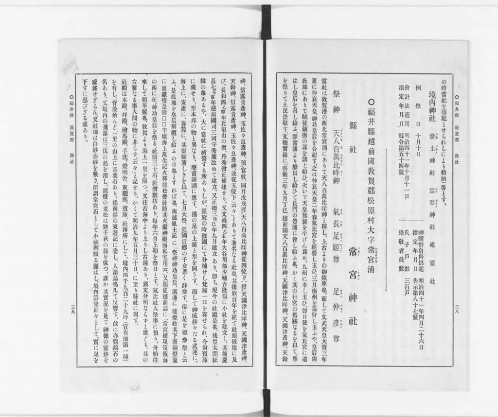 社格所在 (大虫神社の相殿也)(丹生郡大虫村大字大虫 縣社大虫神社相殿)
