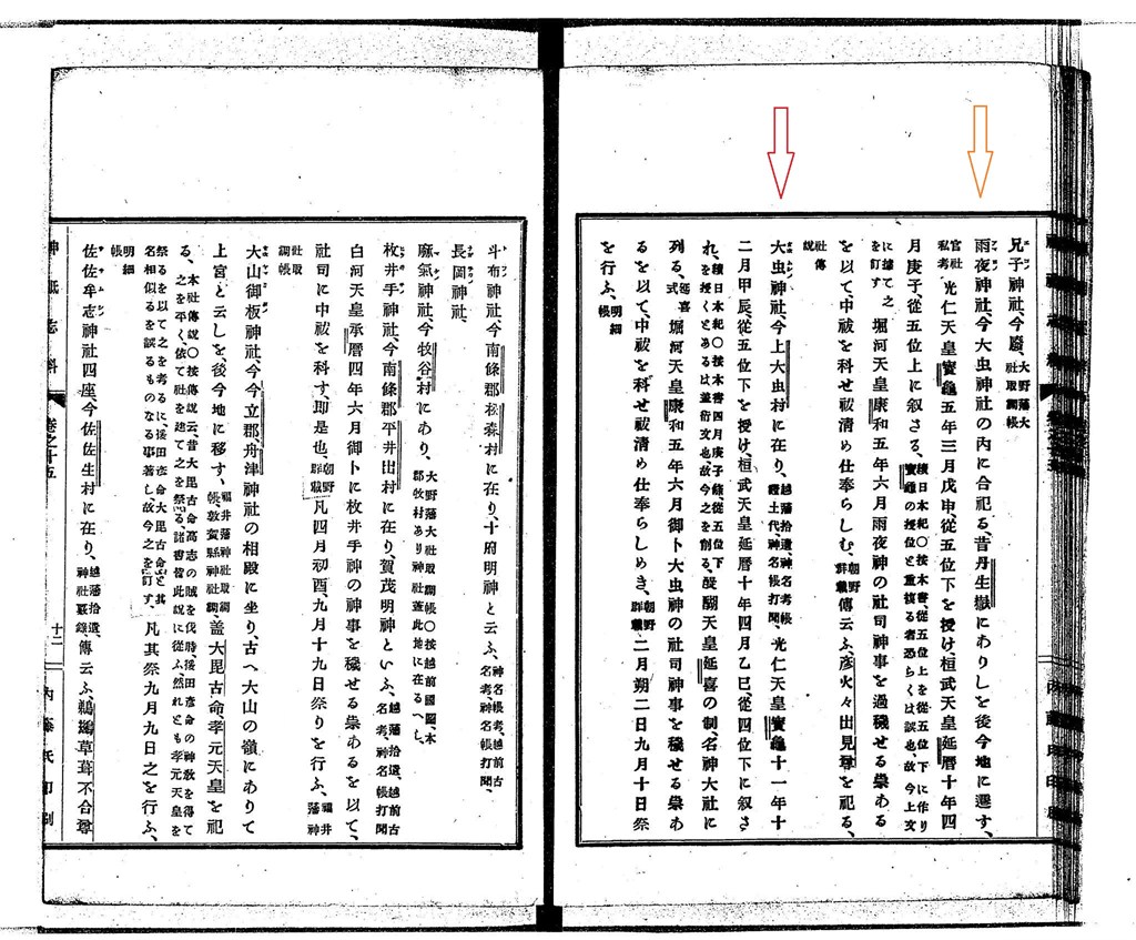 ゛大虫村 大虫神社相殿にます由云るは信がたし゛と記して 大虫神社の相殿の説を否定しています