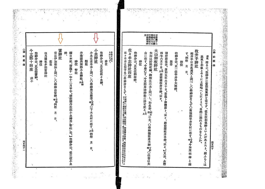 續日本紀、賓龜十一年十二月甲午、越前國 丹生郡 小虫神 爲ニ 幣社 焉 」