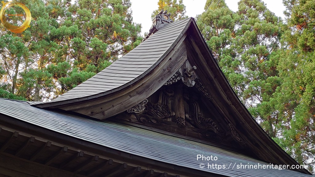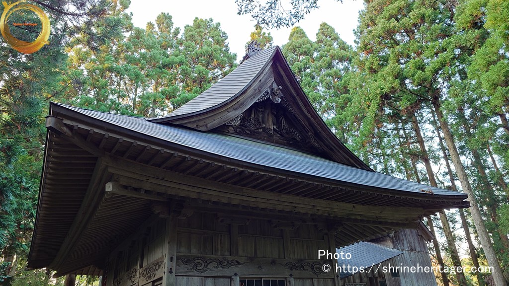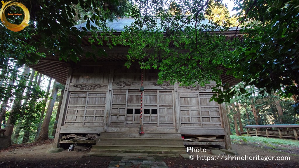 社殿は 拝殿の奥に幣殿・本殿の覆い屋が一体となっています