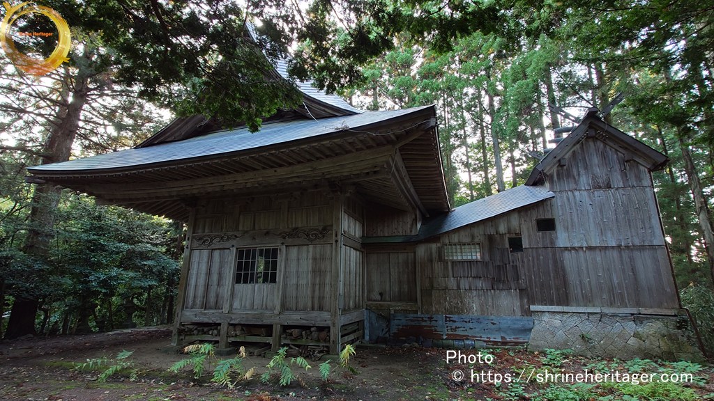当社は延喜式神名帳に記載ある 佐渡九社神の第七に位する大社である 寛文年中 佐渡国雑太郡三宮村に鎮座せる祠を先に勧請ありし 八幡社に合祀 遷座せられたり 明治6年8月式内村社に列せられる 明治31年12 月4日社殿火難に羅りしを氏子は敬神の念強く翌年より二ヶ年で再建 現在に至る
