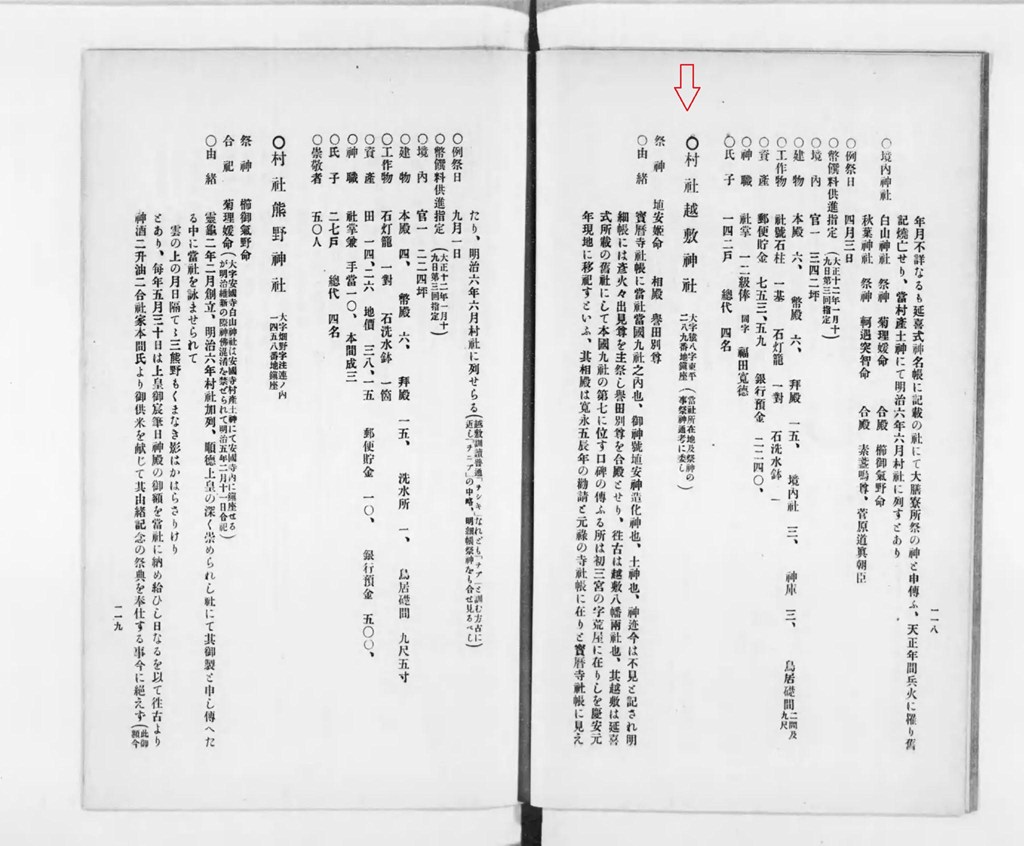 式内社 越敷神社について 所在は゛猿八村 (佐渡郡畑野村大字猿八)‘〈現 越敷神社(佐渡市猿八)〉と記しています