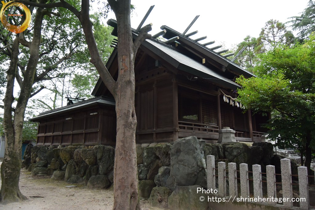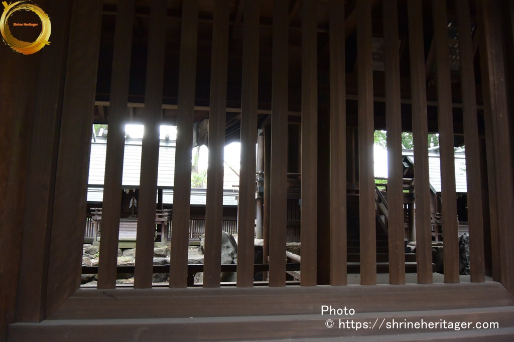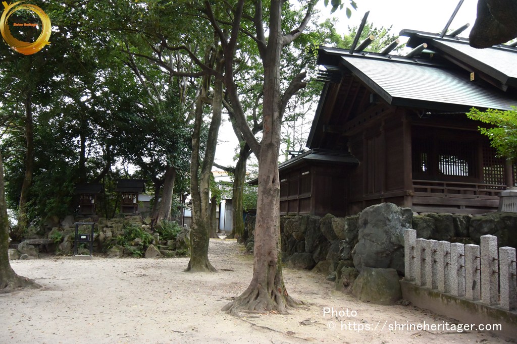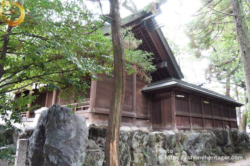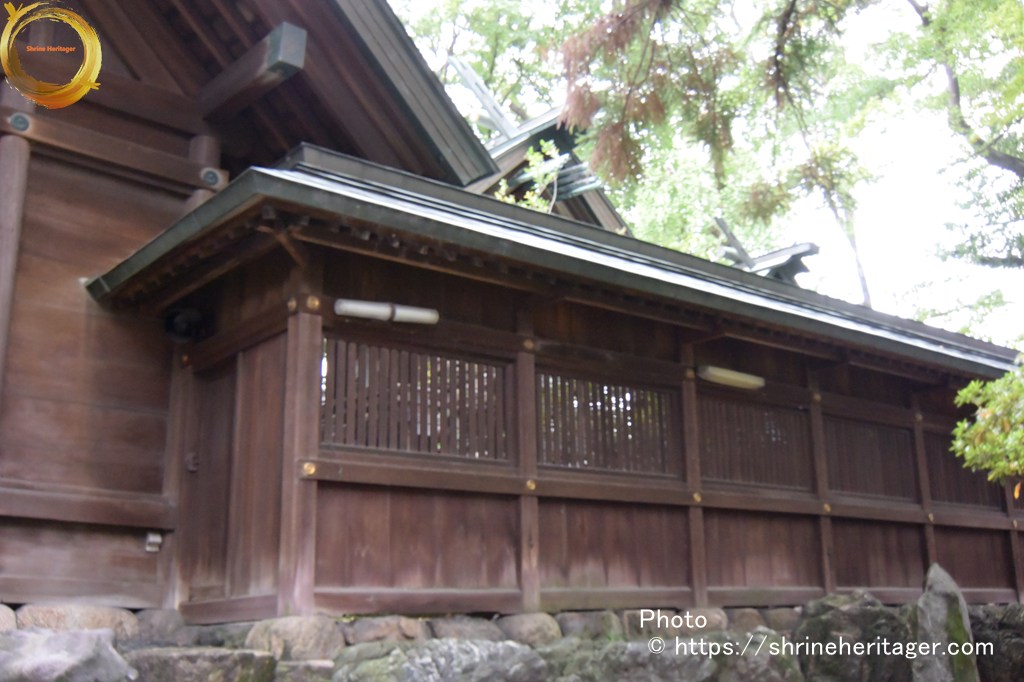 本殿と2つの境内社(・非多神社・ 大江神社)が式内論社〉は拝殿奥の透塀の内に祀られています