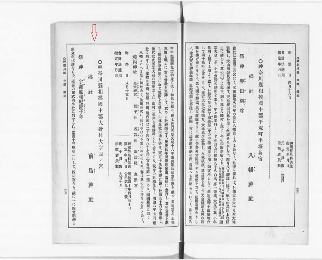 式内社 前鳥神社について 所在は゛四之宮村に在す、゛〈現 前鳥神社(平塚市四之宮)〉と記しています