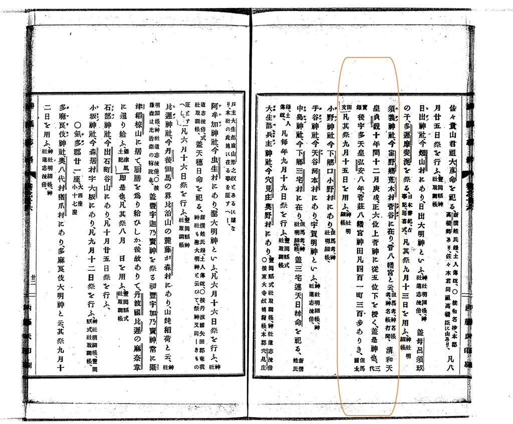 後宇多天皇 弘安八年、菅莊八幡宮 神田凡四百一町三百步ありき、〔但馬國太田文〕