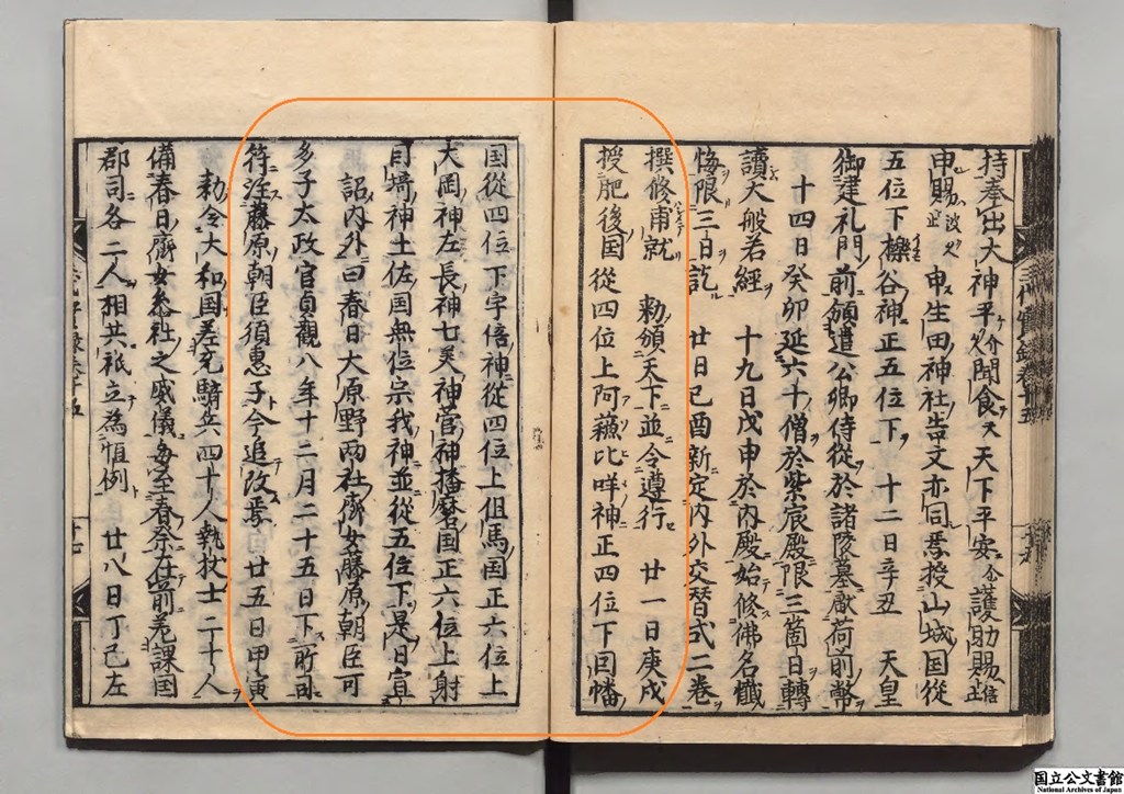 国立公文書館デジタルアーカイブス『日本三代実録』延喜元年(901年)成立 選者:藤原時平/校訂者:松下見林 刊本(跋刊)寛文13年 20冊[旧蔵者]紅葉山文庫https://www.digital.archives.go.jp/DAS/meta/listPhoto?LANG=default&BID=F1000000000000047721&ID=M2014093020345388640&TYPE=&NO=画像利用