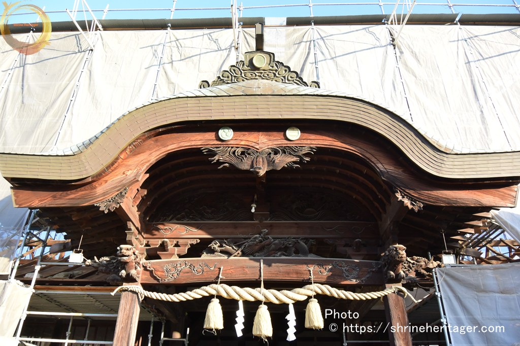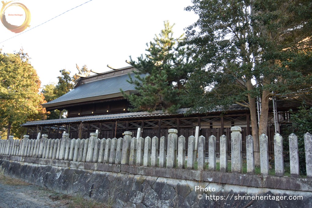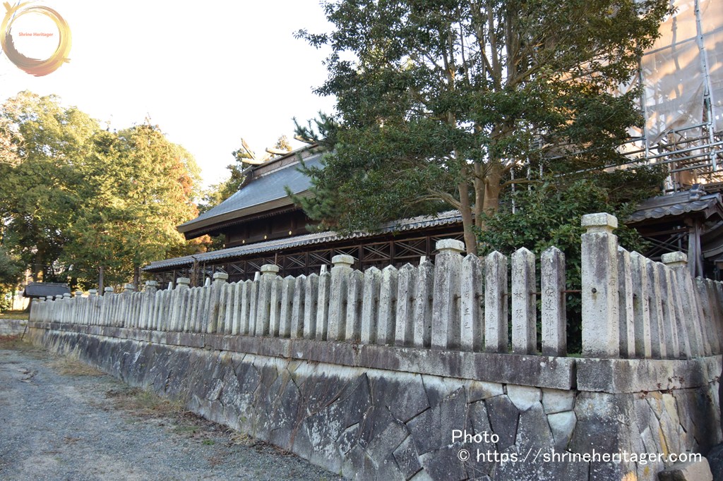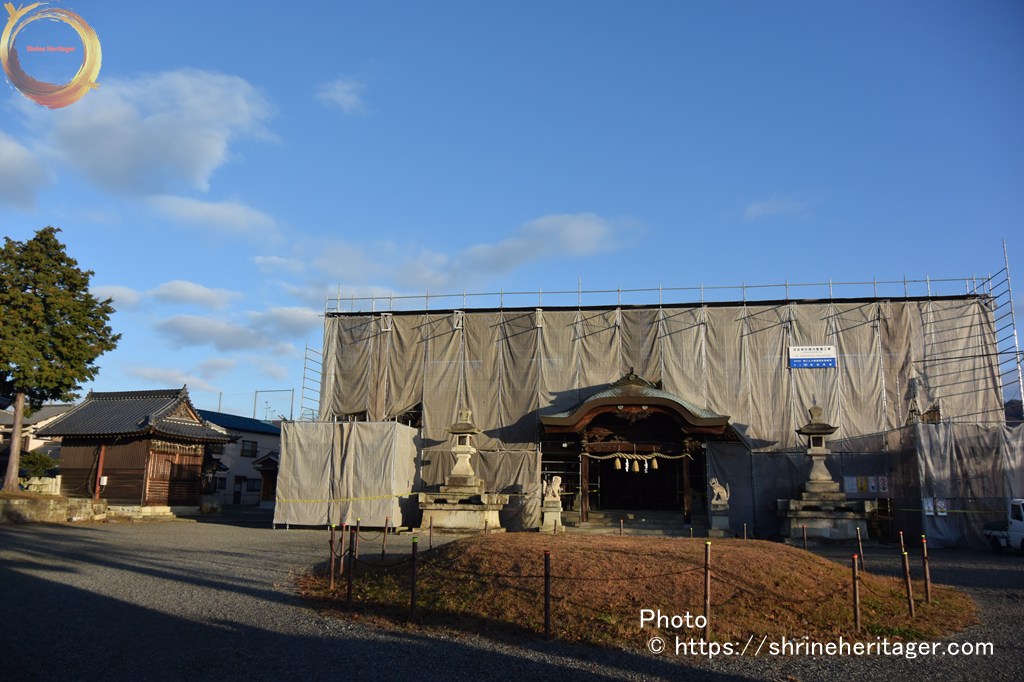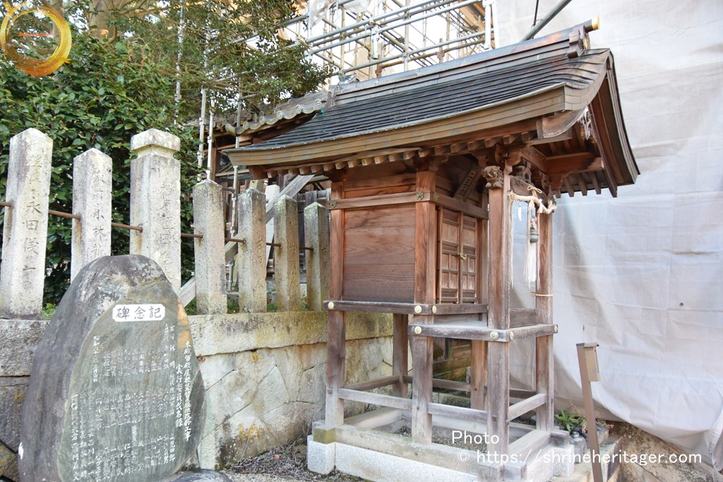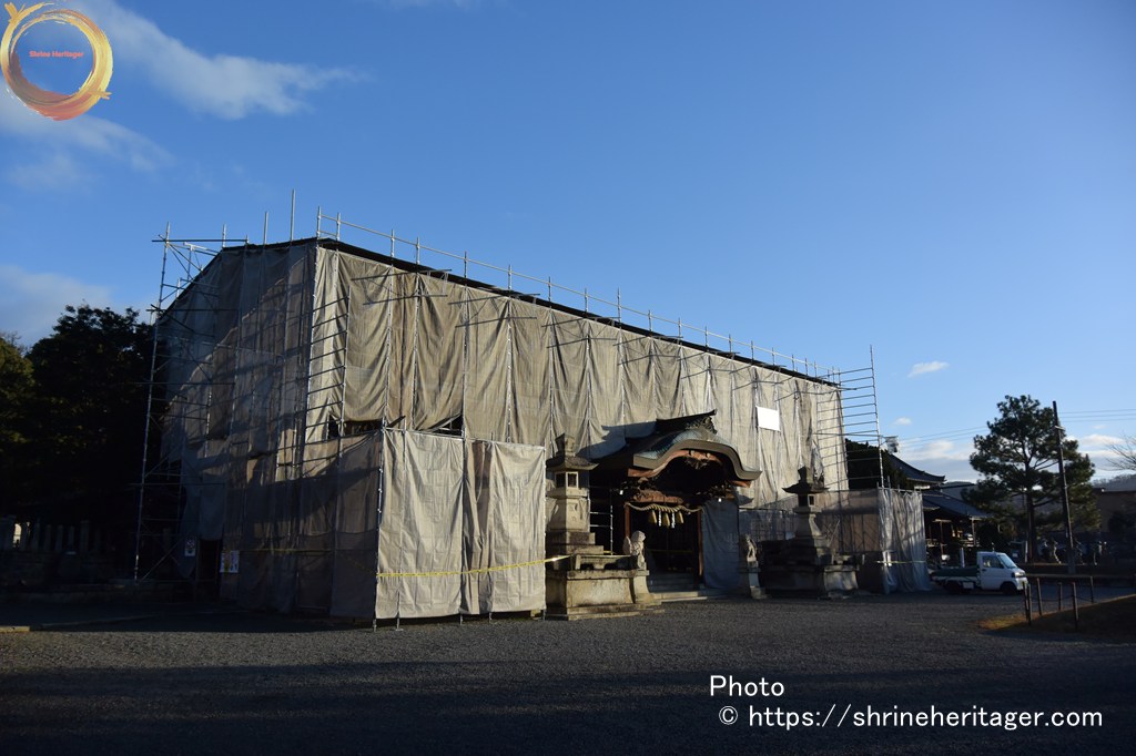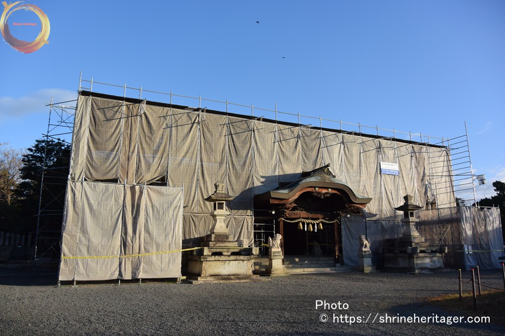 社殿玉垣の北東側に〈境内社〉直毘神社が祀られていましたが 工事用の覆いの中でお参りは出来ませんでした