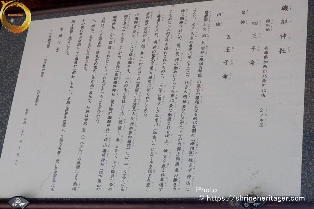 四王子・五王子は 境外摂社 磯部神社(加西市北条町北条)に祀られています