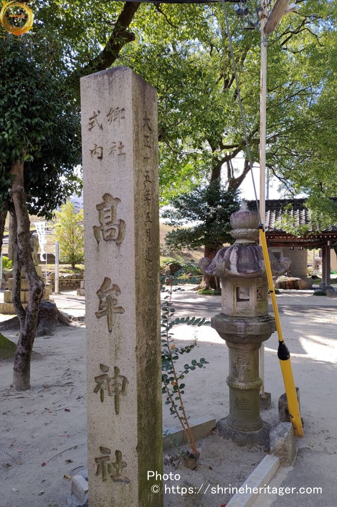 高牟神社(たかむじんじゃ)は 創建は社記に「養老元年(717)鎮座 高見と云ふ名稱を賜ふ」云々と見え 『本国帳』従3位高牟天神・『尾張本国内神明帳』従3位上高見天神とする古社で 延喜式内社 尾張國 春日部郡 髙牟神社(たかむの かみのやしろ)と云う 又一説に延喜式内社 山田郡 羊神社(ひつしの かみのやしろ)とも云う