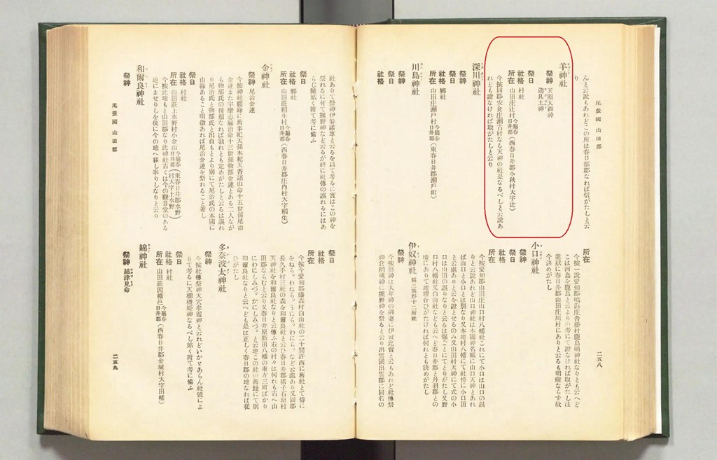 式内社 羊神社について 所在は゛山田庄辻村〔今属 春日井郡〕(西春日井郡小秋村大字辻)゛〈現 羊神社(名古屋市北区辻町)〉と記しています