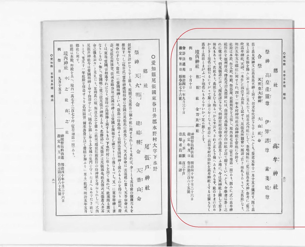 ①延喜式内社 尾張國 春日部郡 髙牟神社