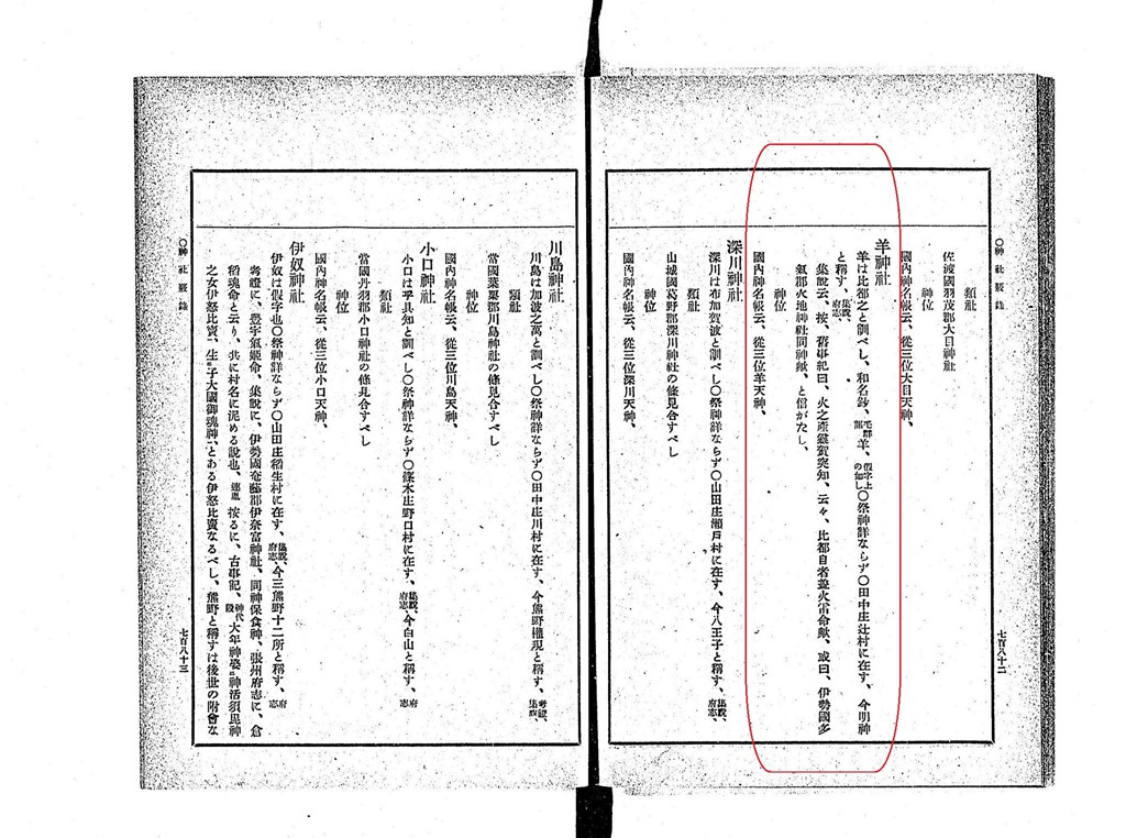 『神祇志料(Jingishiryo)』〈明治9年(1876)出版〉に記される内容