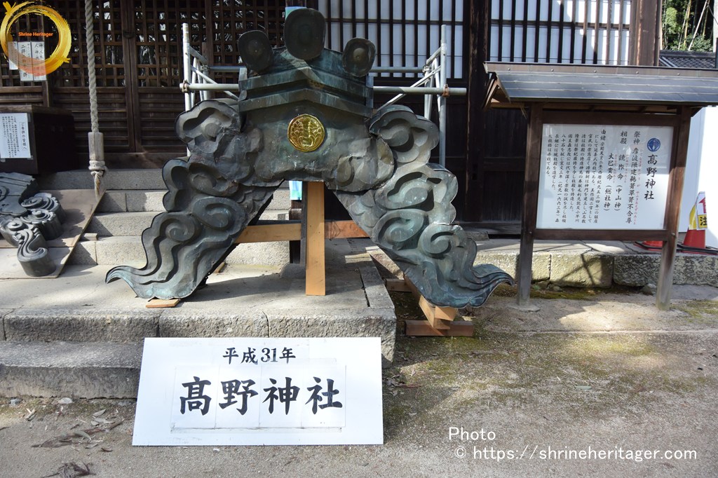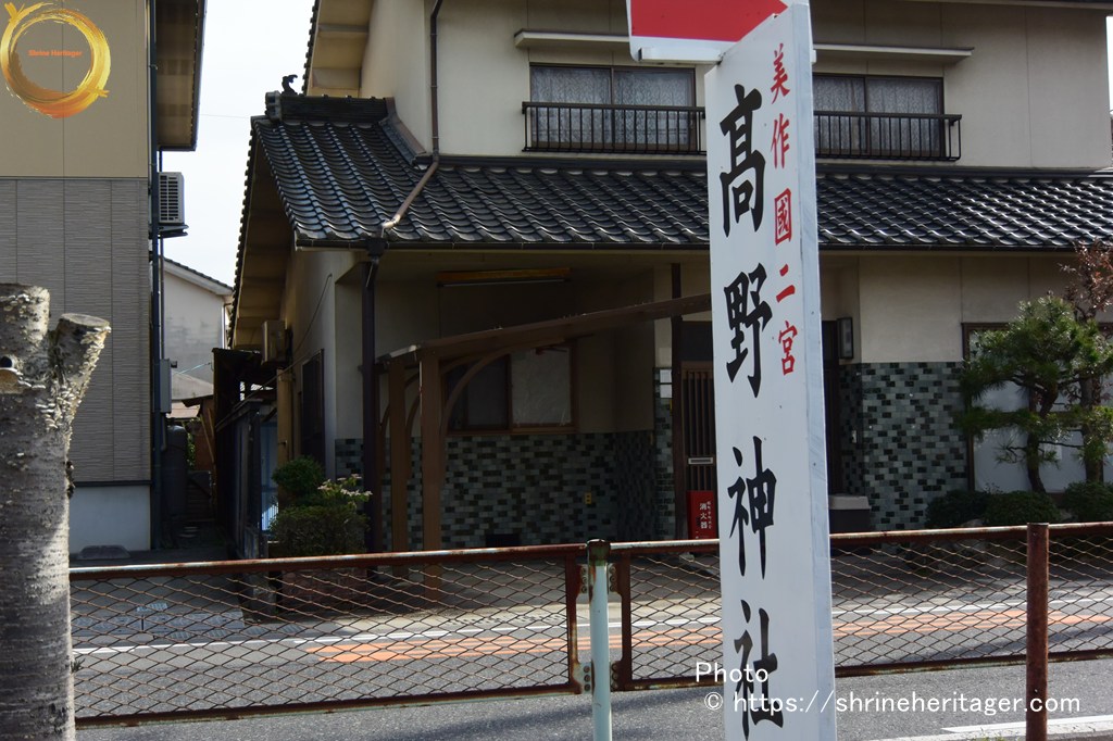 高野神社(たかのじんじゃ)は 美作國二之宮 社伝に吉井川の河原 碫馭盧岩(おのころいわ)を磐境として祀ったのが始まりと伝え のち第27代安閑天皇二年(536)十一月社殿創建と云う 祭神一座 彦波限建鵜葺草葺不合尊で 『三代實録』髙野神・『延喜式』美作國 苫東郡 髙野神社(かうやの かみのやしろ)の論社です