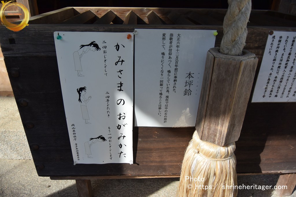 そして戦国衰頽のあとをうけて美作国主となった森氏は、社領を寄進し社殿を修造して祭祀を盛んにし、松平氏もまた年々祭資を供進し、現在の社殿は、寛文3年(1663)森長継によって修造されたもので、県の重要文化財に指定されています。(注)文中のONOは「石」偏に「段」です。※「全国神社祭祀祭礼総合調査(平成7年)」[神社本庁]から参照
