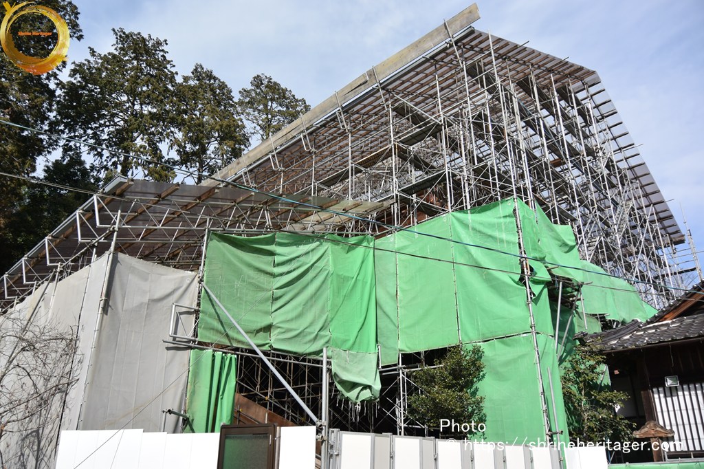 拝殿には 張り紙があり 本殿改修につき 神様は「仮御殿」に遷座しているとの事