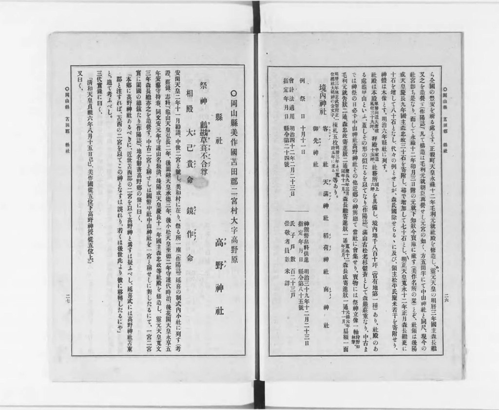 社格 郷社 (縣社)所在 二宮村(明細帳に高野本合村字西寺下) (苫田郡二宮村 )