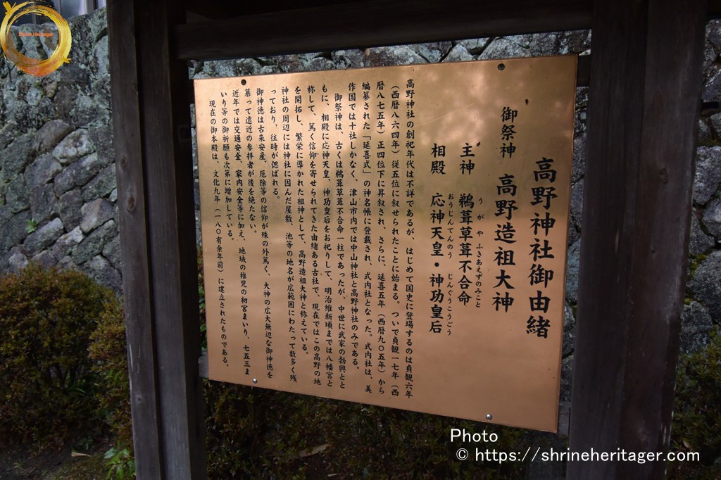 今按 社傳 祭神 鵜草葺不合尊とあれ由ありとも思はれす  新撰姓氏錄に高野大名草彦命之後也とあるにより て高野氏の祖と云説もあれとそれにもあらさるべし