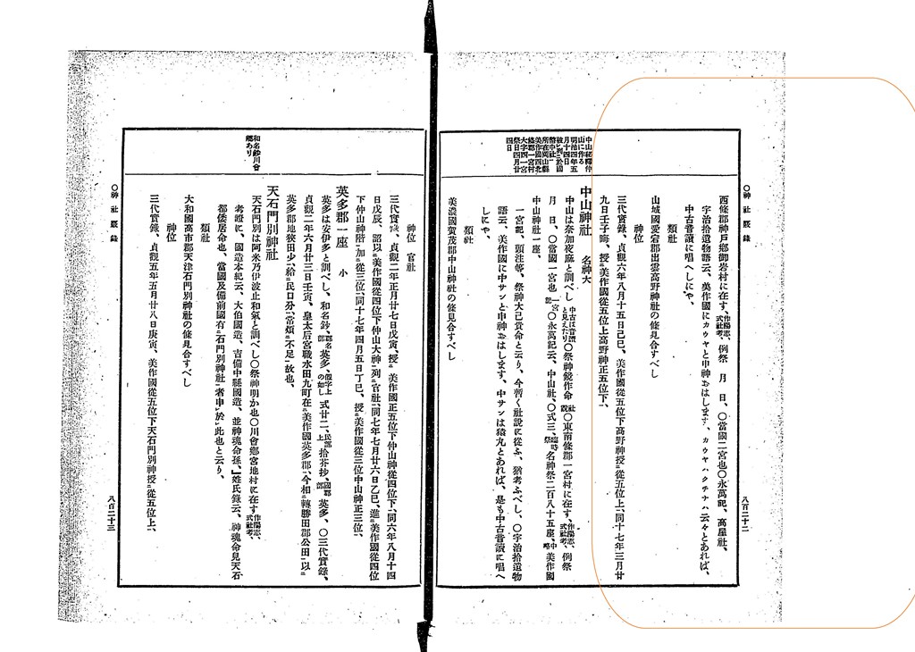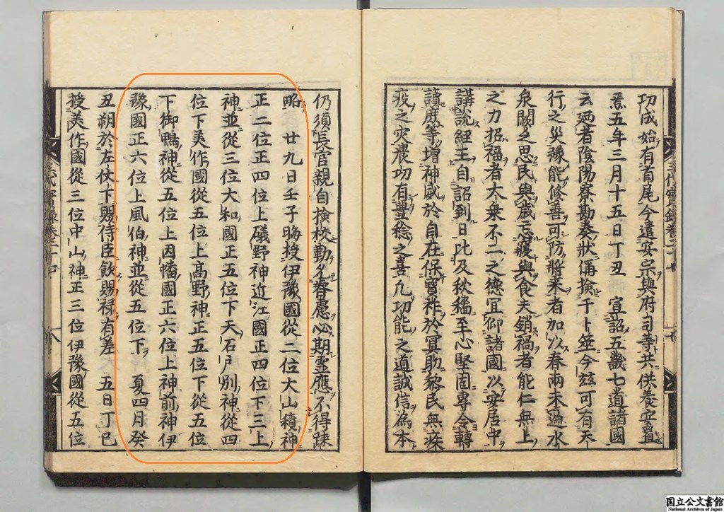 美作國 從五位上 高野神 正五位下 從五位下 御鴨神 從五位上