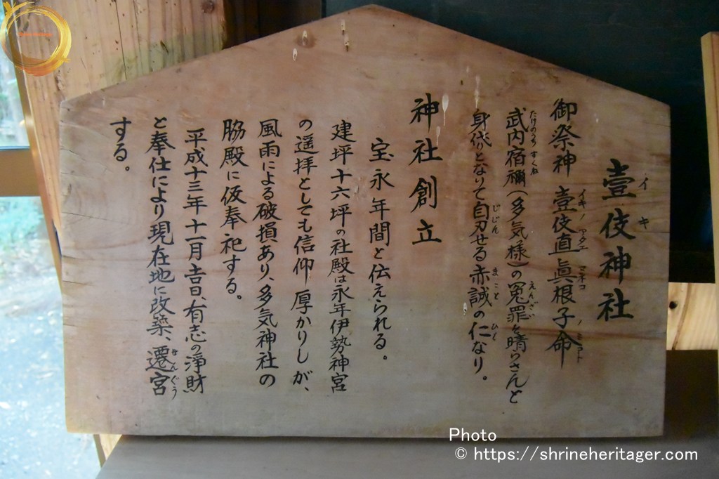 拝殿内に〈境内社〉壹伎(イキ)神社 破損して 多気神社の脇殿に仮奉祀とのこと