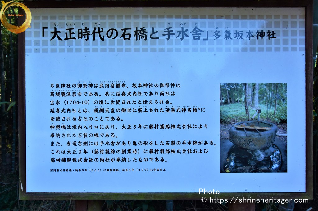 社号標には「延喜式内社 多氣 坂本 神社」と刻字されています