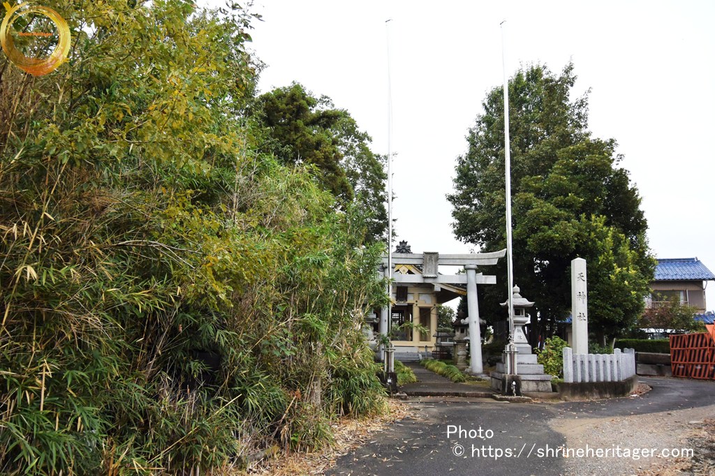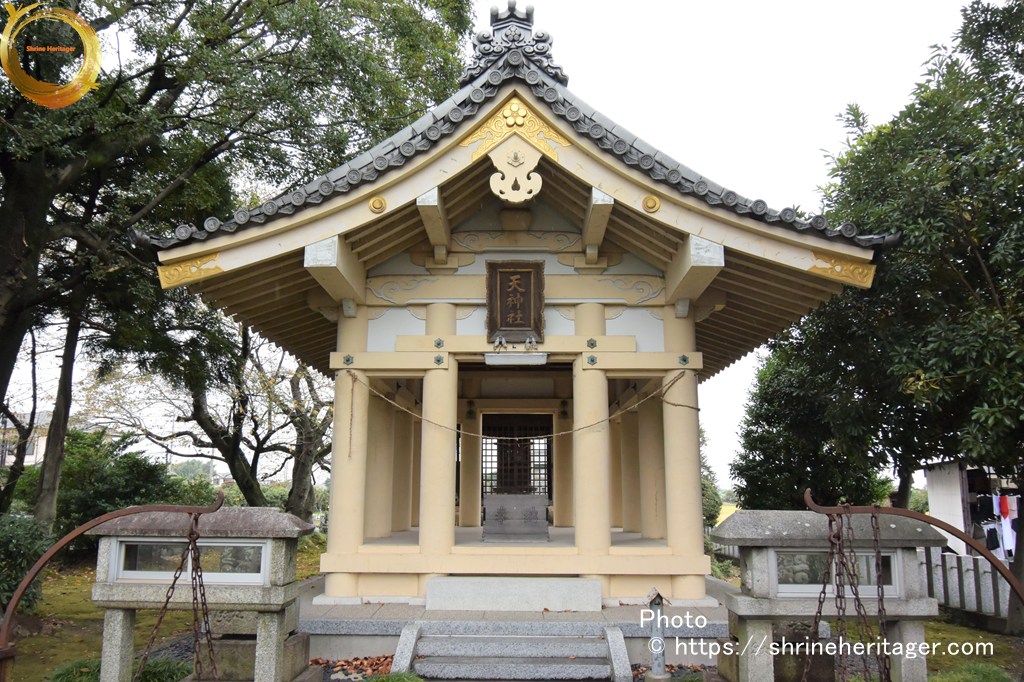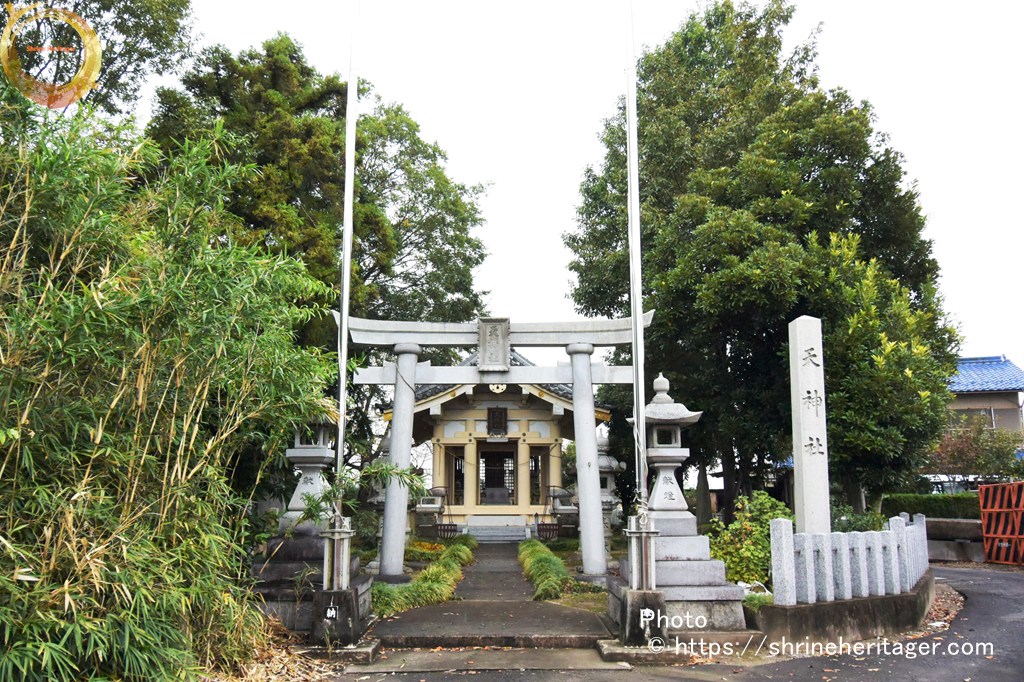 天神社(てんじんしゃ)は 津田正生は『尾張國地名考』『尾張神名帳集設乃訂考』に延喜式内社 尾張國 中嶋郡 賣夫神社(ひめふの かみのやしろ)と挙げており 旧鎮座地は今の宮より艮〈北東〉二三町〈218~327m程〉天神と呼んだ所 又 今の宮の北東を彌宜屋〈社人住居〉 宮北を長福寺〈神宮寺〉と云い大宮の名残の証と記します