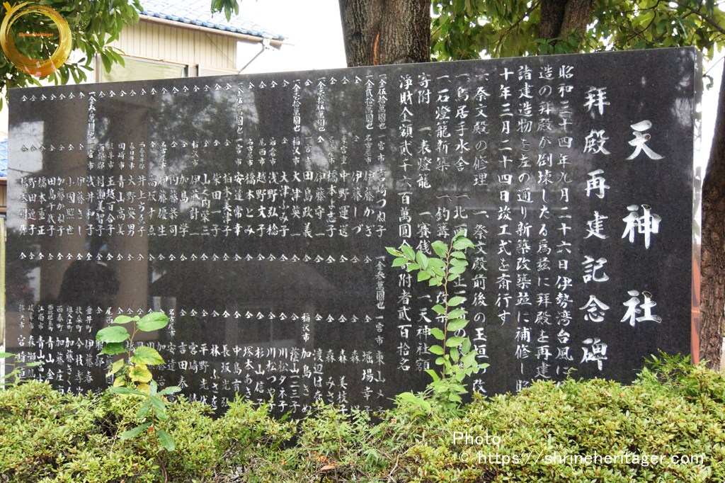 拝殿はコンクリート造りです 拝殿の再建記念碑によると 昭和34年9月伊勢湾台風によって拝殿が倒壊し 氏子の寄付によって再建したと記されています