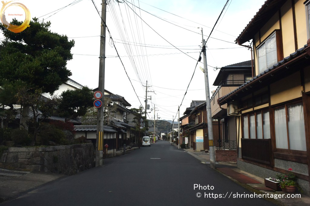 加悦町(かやちょう)の「ちりめん街道」沿い〈京都府与謝郡与謝野町加悦重要伝統的建造物群保存地区の通称 旧加悦町役場庁舎から西山工場までの南北700メートルの旧街道に面した地区を指す〉に 参道入口があります
