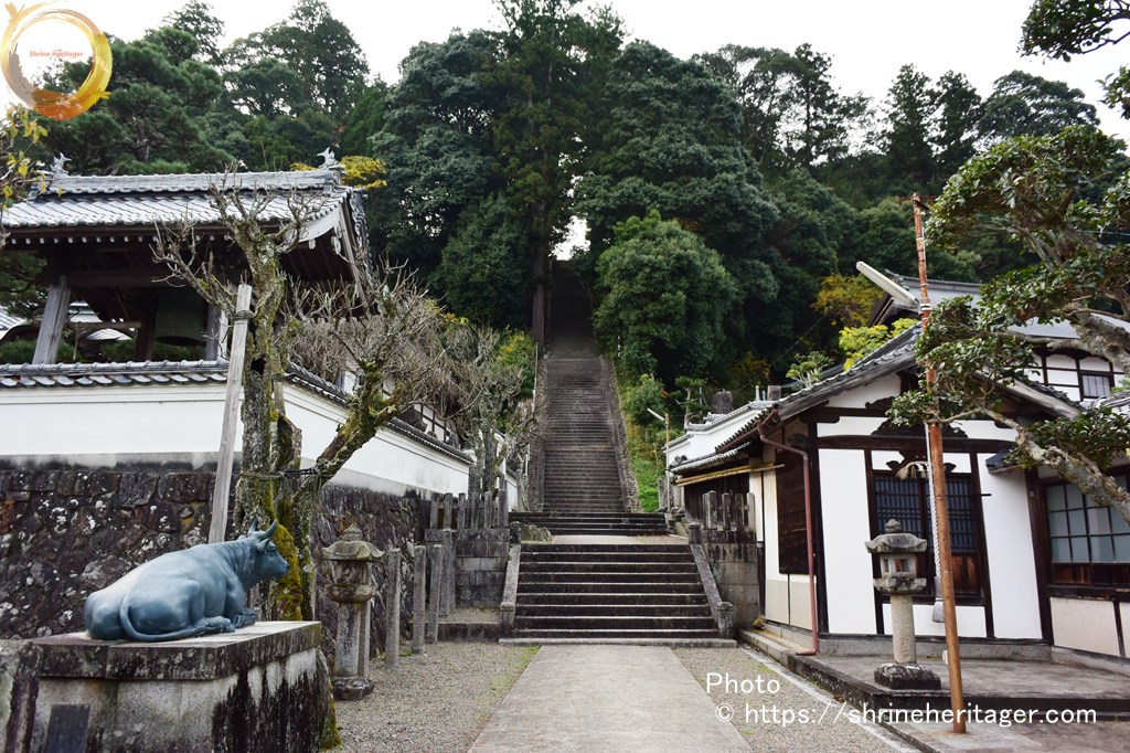 参道の石段一三七段は明治三十六年菅公一千年祭記念事案として再建されたものです。石段在登り詰めると天満宮社殿があります。眼下には「ちりめん街道」、加悦谷平野在望むことができます