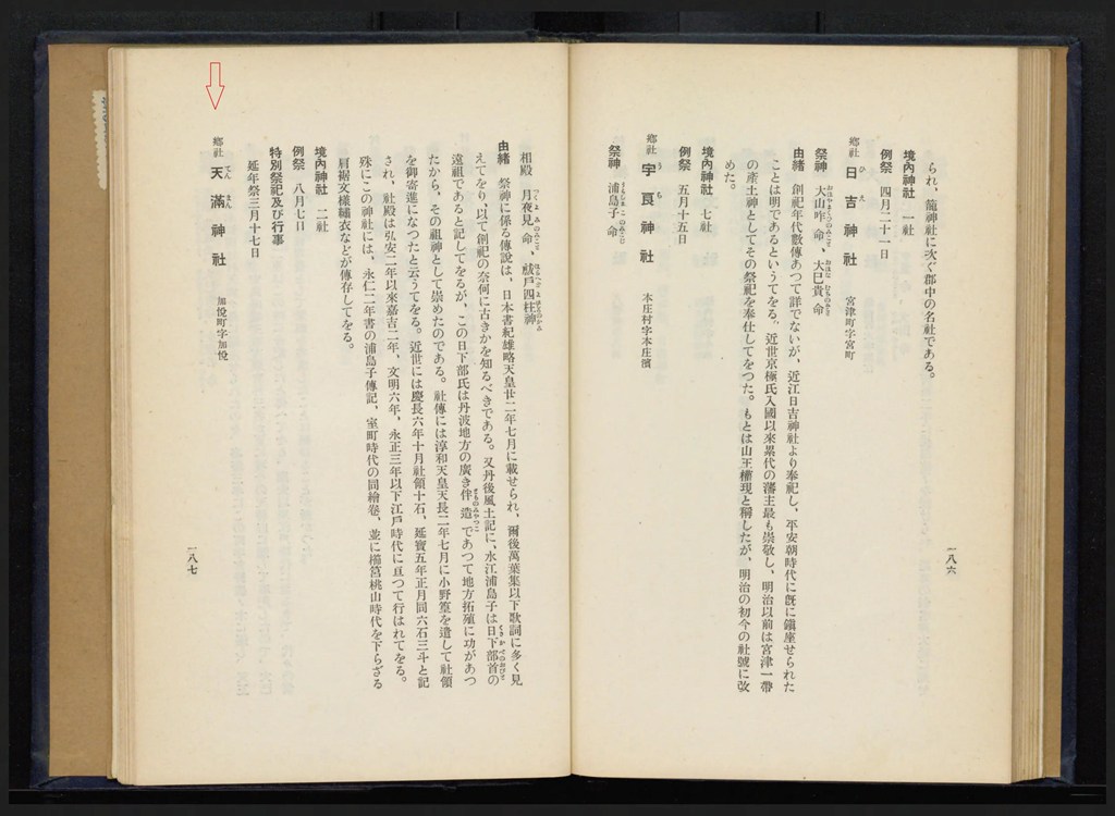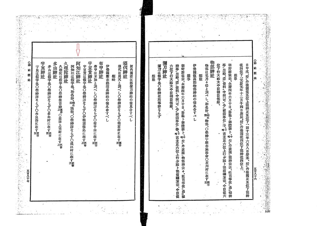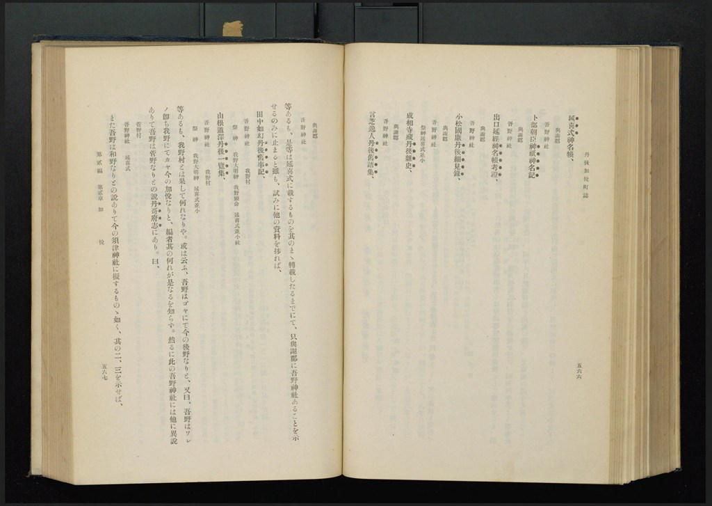 その中でも巻9・10を『延喜式神名帳(Engishiki Jimmeicho)』といい 当時〈927年12月編纂〉「官社」に指定された全国の神社(式内社)の一覧となっています