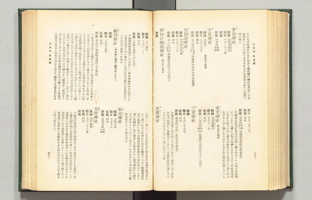 ・・・〈中略〉等あるも、是等は延喜式に載するものを其のまま轉載したるまでにて、只與謝郡に吾野神社あることを示せるのみに止まると雖も、試みに他の資料を措れば、