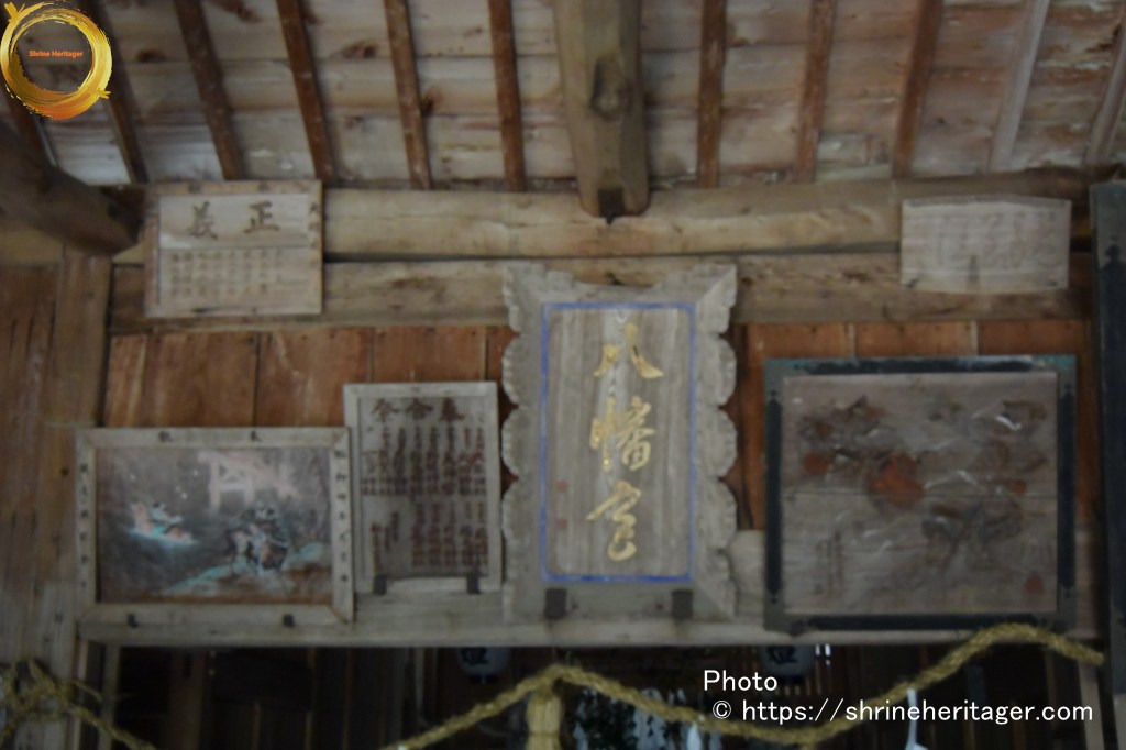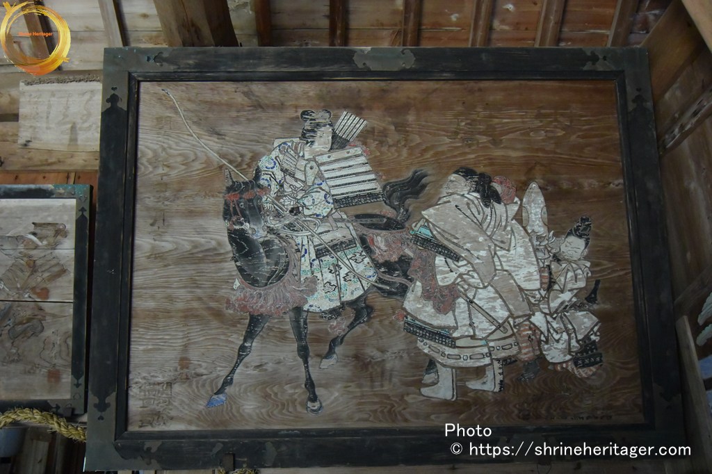 宮内には絵馬があり、神功皇后(じんぐうこうごう)と武内宿弥(たけのうちすくね)、羽柴秀吉(はしばひでよし)と四方天但馬守(しほうてんたじまのかみ)の絵馬が拝殿にあります。明治15年に描かれた川中島合戦の図は 現在は芸西村文化資料館に保管されています。