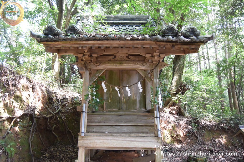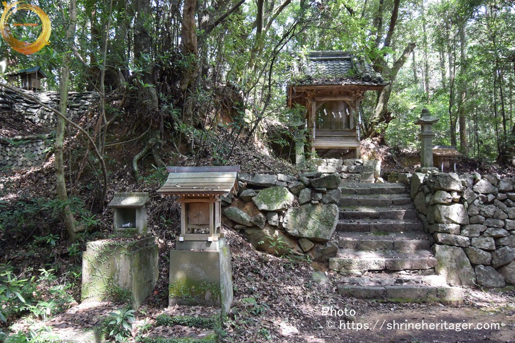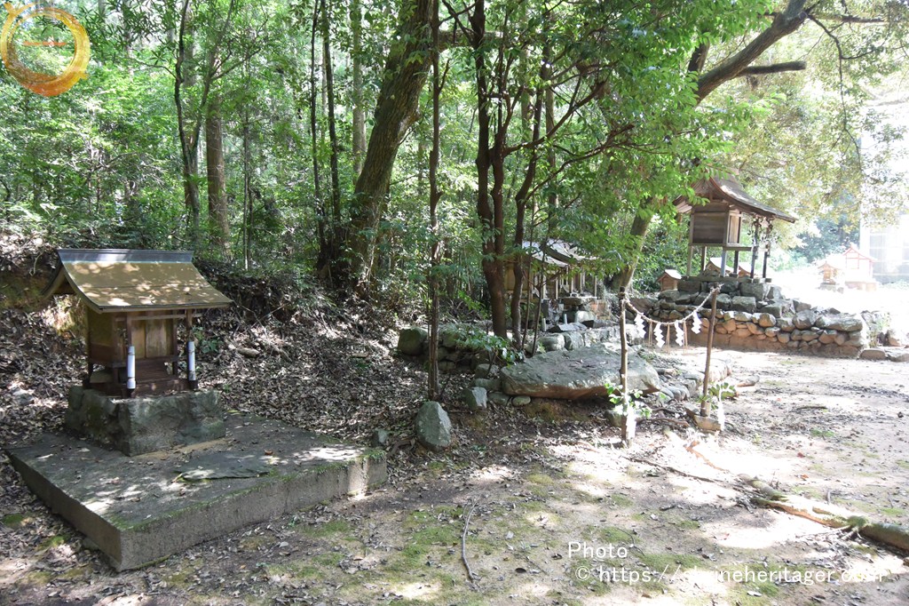 盖 坂本朝臣の祖 葛城襲津彦命を祀る、〔新撰姓氏録、参取和名鈔、○按 布師臣、坂本朝臣と同祖にして、本郡に布師郷あり、其族人の祭を取なる事著し、〕