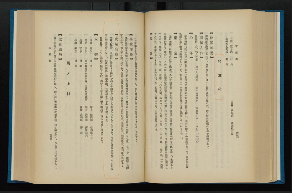 平安朝時代 既に和食の郷名があり、其後今の藝西四ヶ村を和食庄と稱し、本村は卽ちその本庄であった。維新後 行政區劃の上に幾多の變遷があったが、明治二十二年自治制の確立と共に獨立して一村となった。