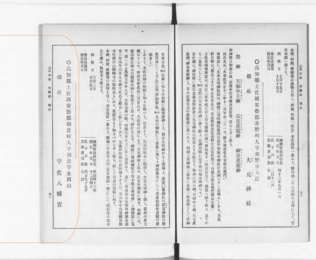 その中でも巻9・10を『延喜式神名帳(Engishiki Jimmeicho)』といい 当時〈927年12月編纂〉「官社」に指定された全国の神社(式内社)の一覧となっています