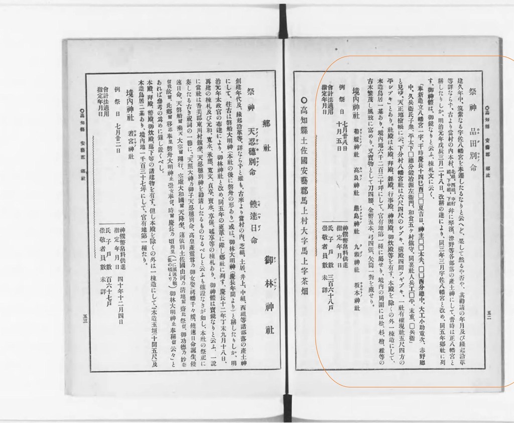 凡 十月二十五日祭を行ふ、〔高知縣神社取調帳〕