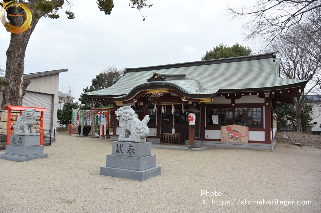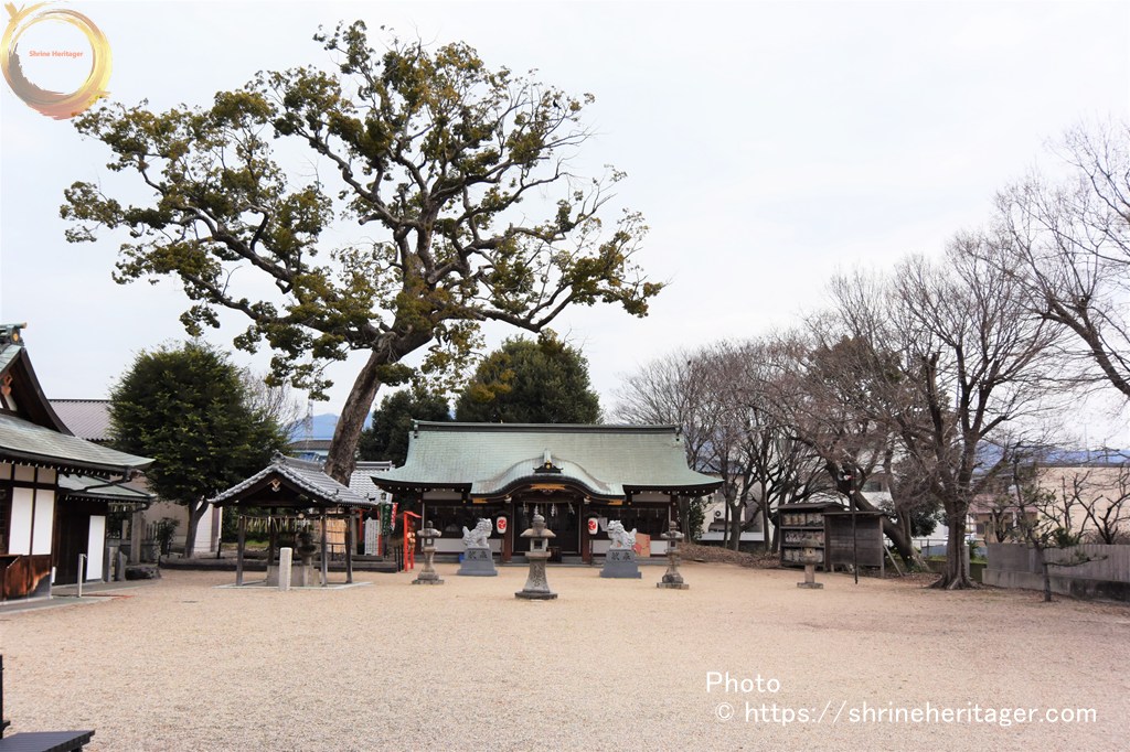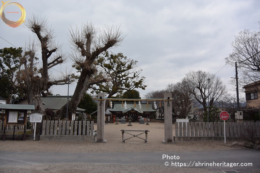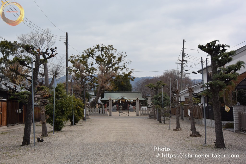 現時 社域は九百餘坪ありて街道に接し、本殿、幣殿、拜殿、神輿庫の外、白山神社、八阪神社、琴平神社、稻荷神社等の末社四座あり、明治六年郷社に昇格せり。