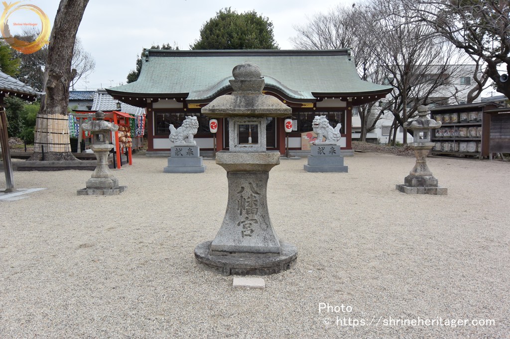 社殿の真正面に 八幡宮と刻字のある灯籠があります