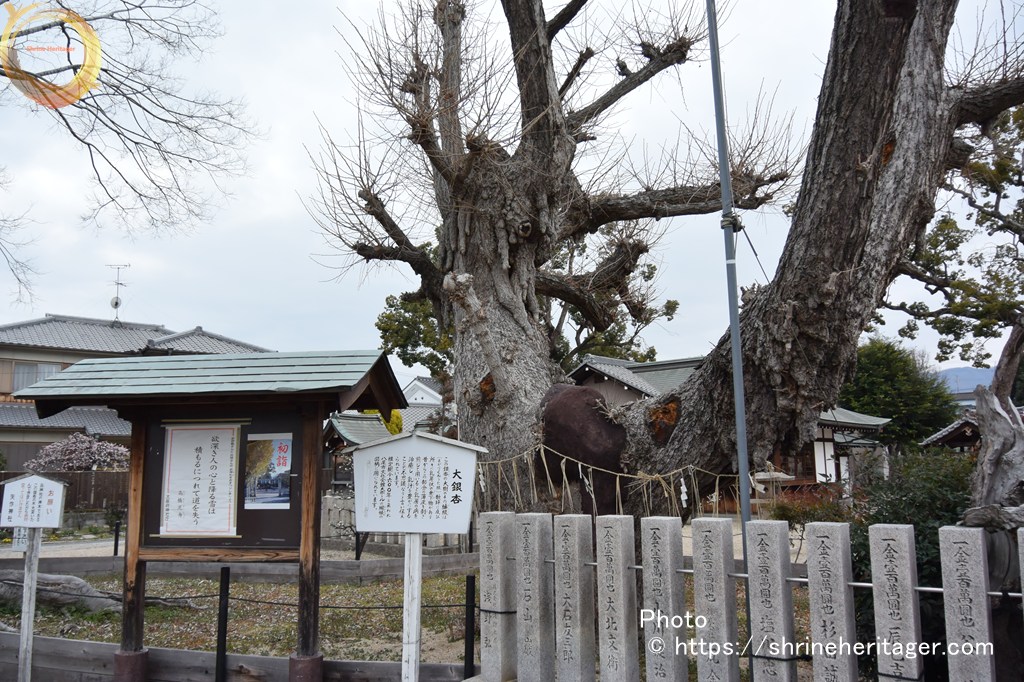 注連柱をくぐった左側(北側)には樹齢600年とも云う大イチョウの木があります