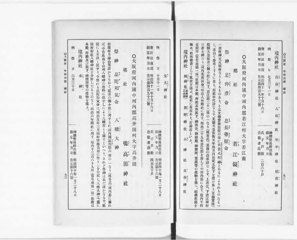 (神様の鎮座数)河内國 113座(大23座(並月次新嘗・就中8座預相嘗)・小90座(並官幣))