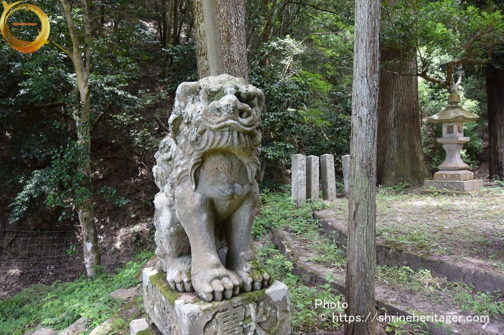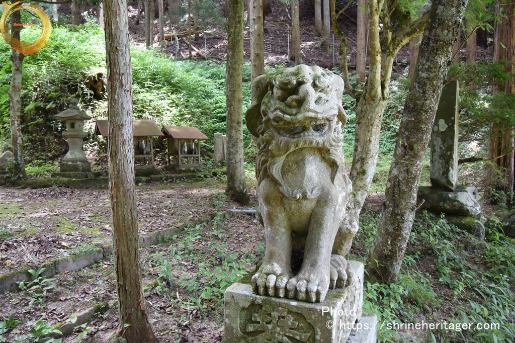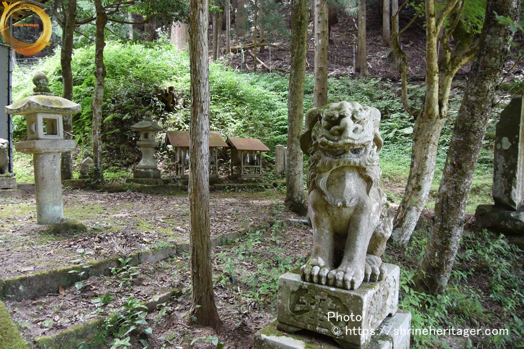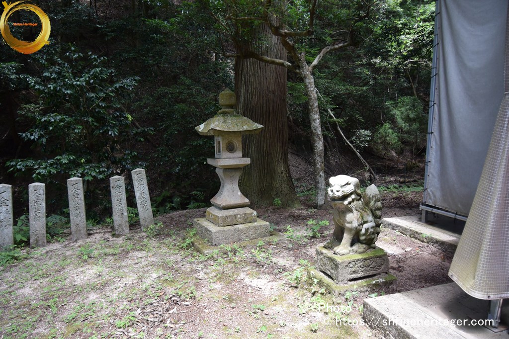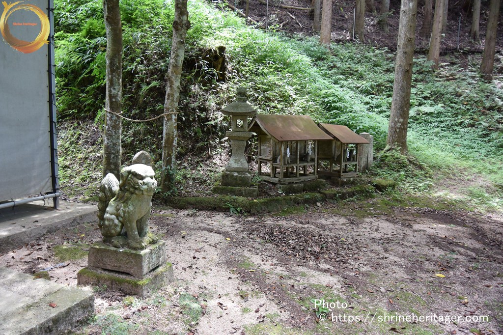 石段途中の 右手の狛犬 その後ろに 境内社が2祠 祀られています