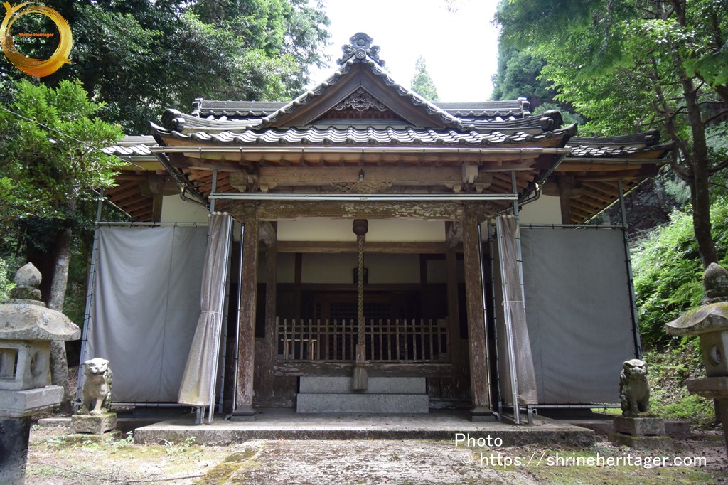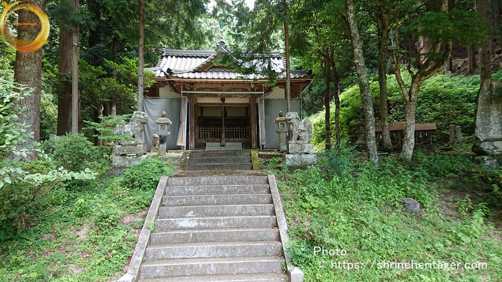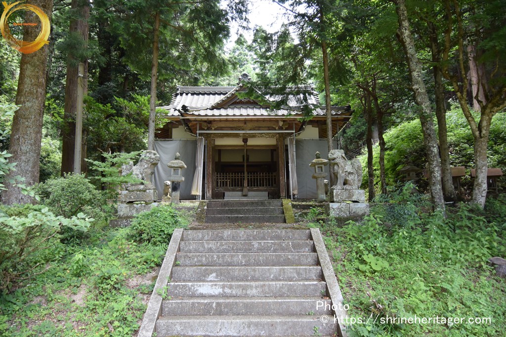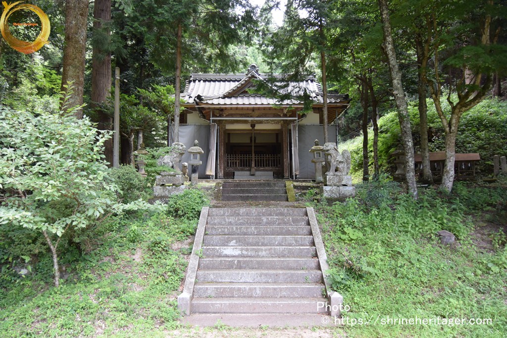 明治四十五年 幣帛神饌料供進神社に指定せられ、益々神威の発揚を見るに至れり。一 本殿 流造壹間社 唐破風向拜付欅檜材屋根板葺 建坪貮坪七合五勺