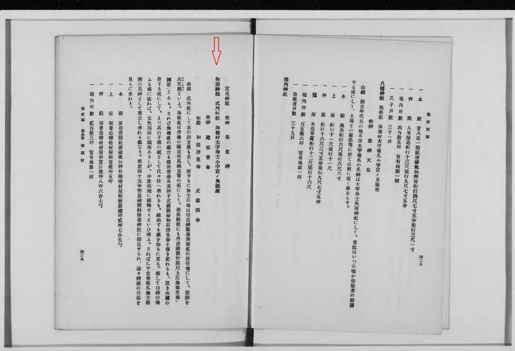 矢田神社 式内村社 海部村大字海士小字宮ノ奥 鎭座