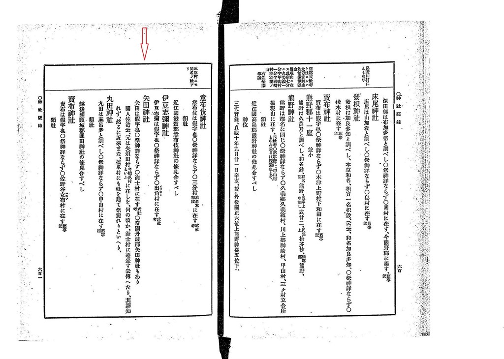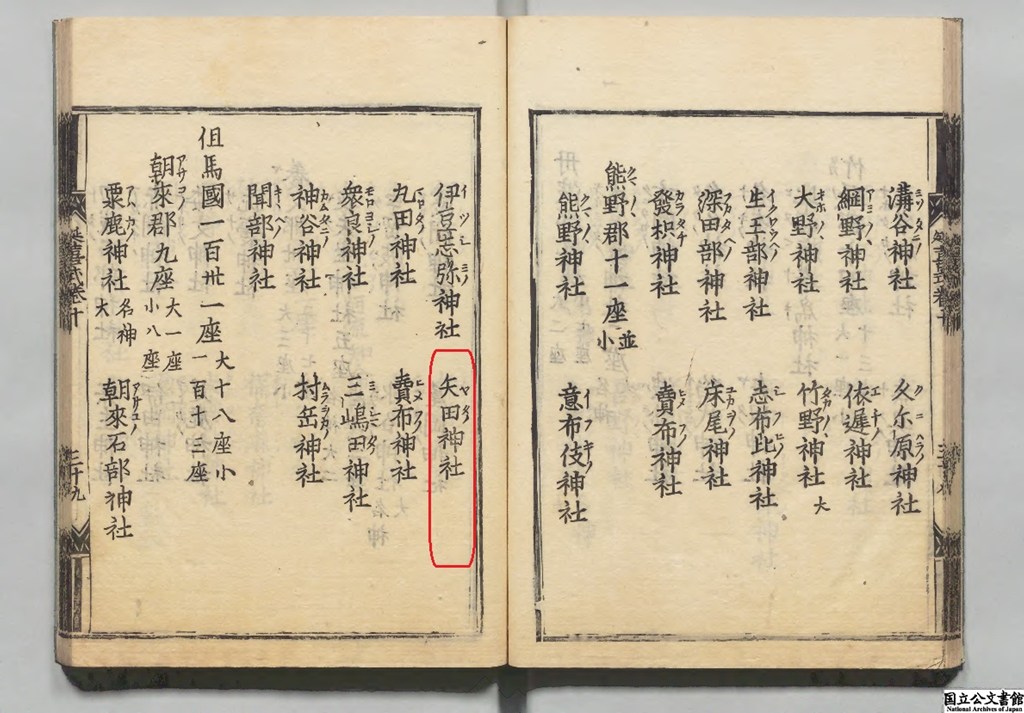 その中でも巻9・10を『延喜式神名帳(Engishiki Jimmeicho)』といい 当時〈927年12月編纂〉「官社」に指定された全国の神社(式内社)の一覧となっています